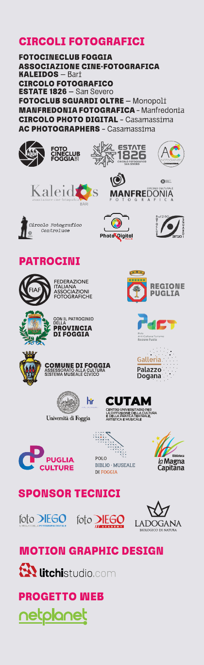 Tutto ciò è stato possibile grazie alla collaborazione e al partenariato del Comune di Foggia, della FIAF, di Puglia Culture, dell'Università di Foggia.